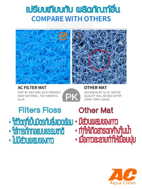 ใยกรองเกรดพรีเมี่ยม Filter Floss ผลิตจากเม็ดพลาสติกคุณภาพ ตัดง่าย ล้างง่าย กรองได้ละเอียด ใช้งานได้ยาวนานไม่เปื่อย