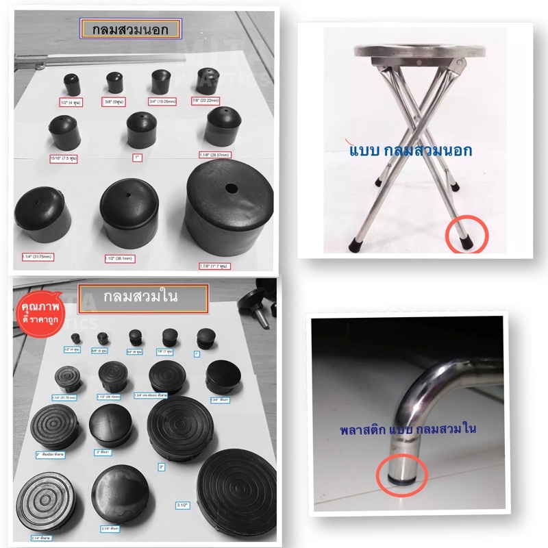 จุกรองขาเก้าอี้ พลาสติกรองขาโต๊ะ พลาสติกรองขาเก้าอี้ ปลอกหุ้มขาโต๊ะ จุกอุดขาตู้ กลมสวมนอก กลมสวมใน