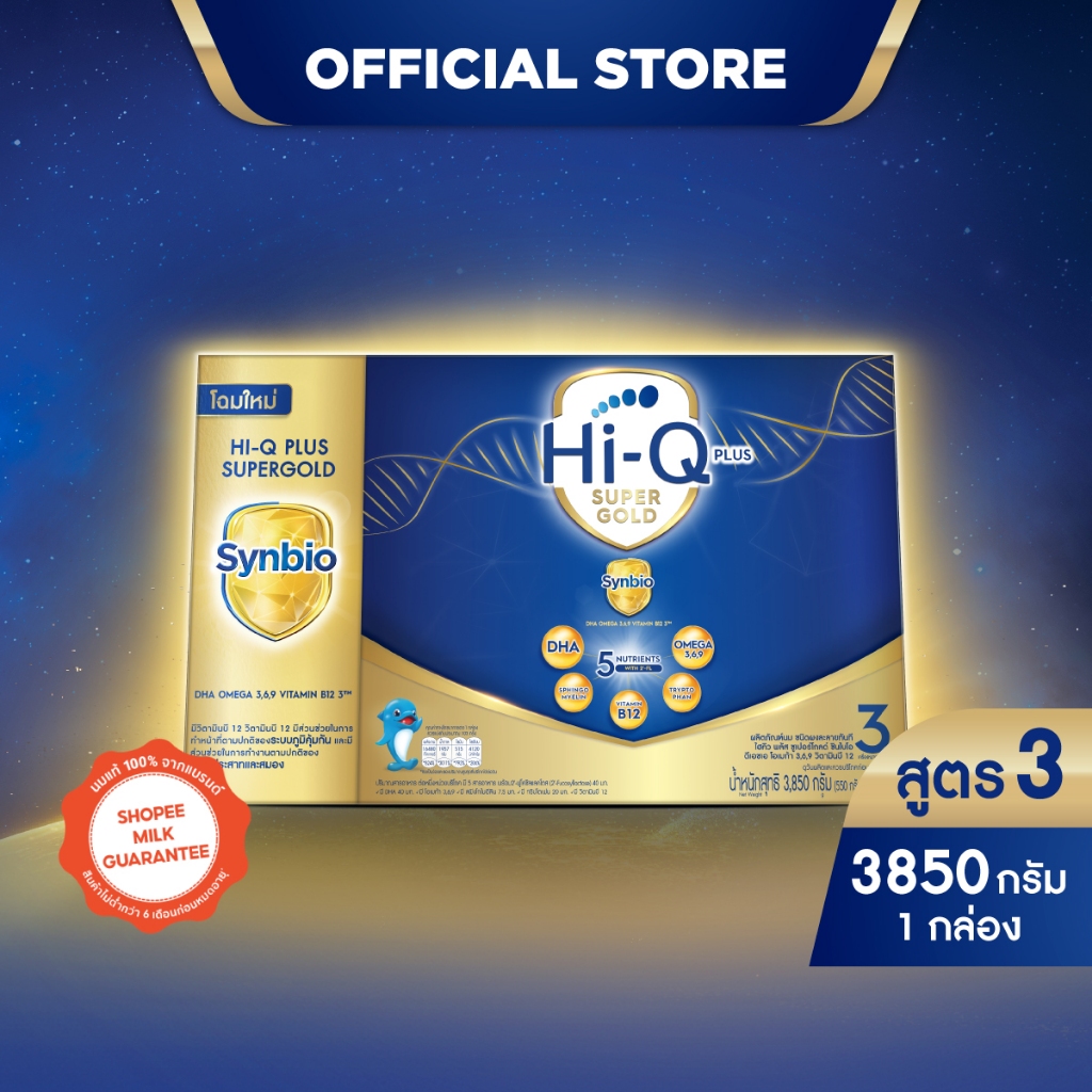 นมไฮคิว พลัส ซูเปอร์โกลด์ ซินไบโอ นมผงสูตร3 3850 กรัม HiQ Super Gold Synbio