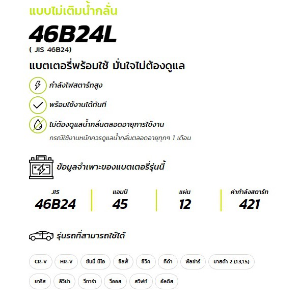 ส่งด่วน GS 46B24L (45Ah) Battery แบตเตอรี่รถยนต์ กึ่งแห้ง Vios Altis City แท้ พร้อมใช้ แบตรถยนต์