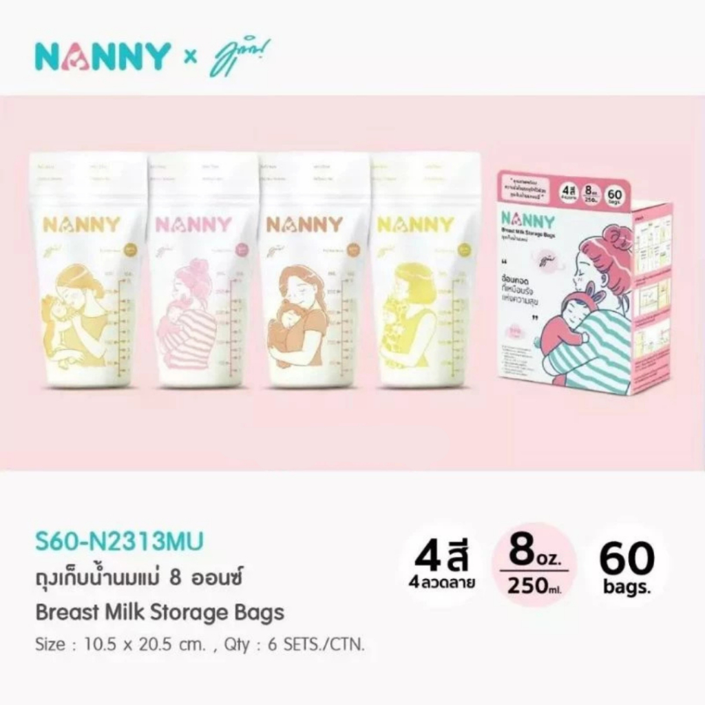 Nanny ถุงเก็บน้ำนมแม่ 4/5/8 ออนซ์ กล่องละ 60/70 ถุง ล็อตใหม่ แนนนี่