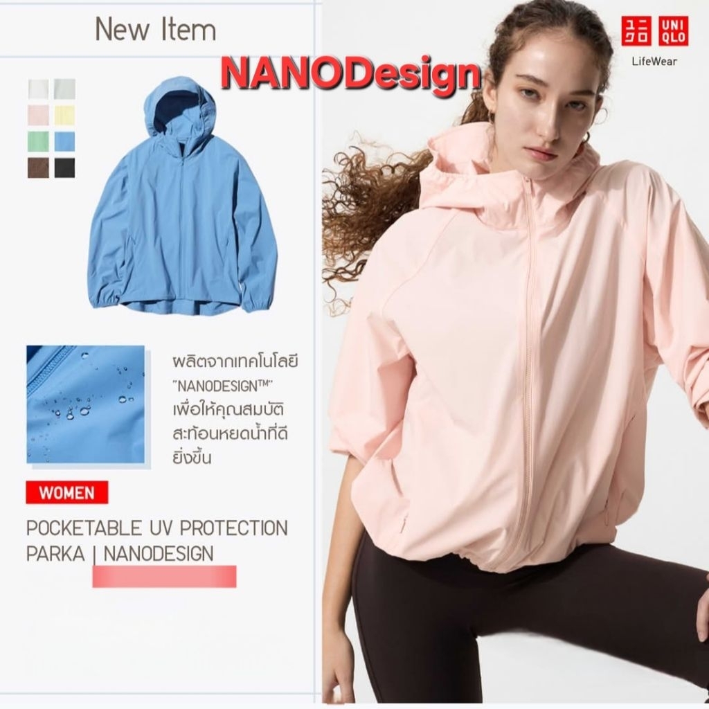 วันนี้SALE🌞ผู้หญิง♥︎แบบใหม่ NANODESIGN📣โค้ดลด25%SHOPEE🧥กันแดด เสื้อฮู้ดพับเก็บได้☔ปรอย UNIQLO แท้ของใหม่