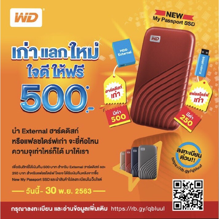 WD External Harddisk SSD 2TB NEW USB 3.2 Gen2 ฮาร์ดดิสก์แบบพกพา รุ่น My Passport SSD (WDBAGF0020B) ประกัน Synnex 5 ปี