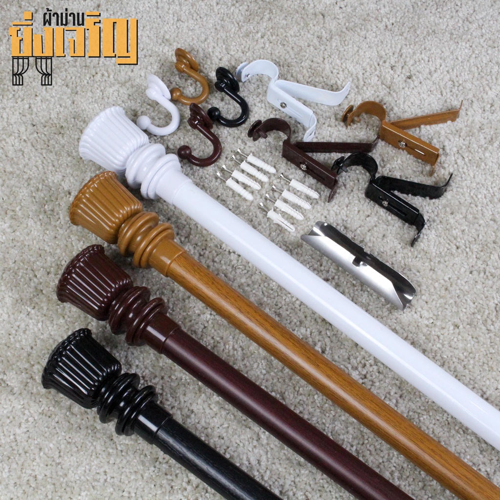 ชุดราวผ้าม่าน 2ชั้น(2ราว) (หัวหลุย ดำ) ผ้าม่านตาไก่ สีขาว ดำ สักทอง