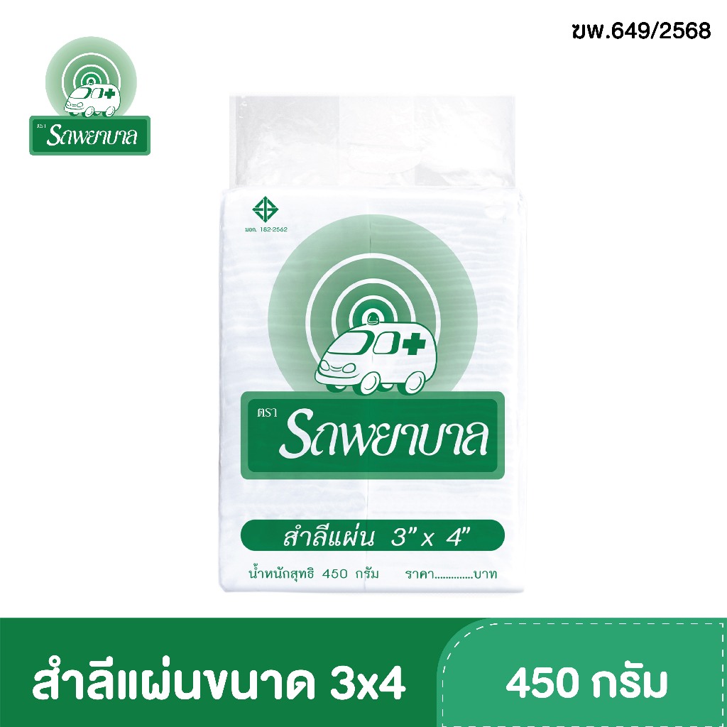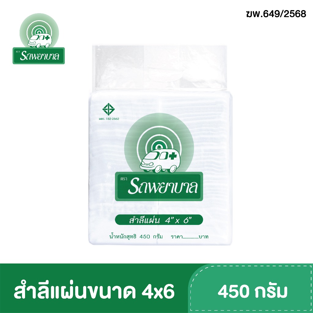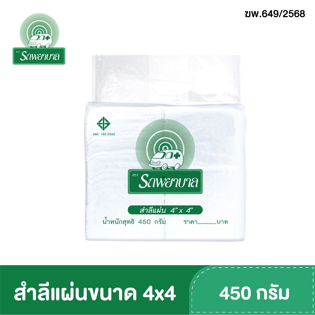 สำลีแผ่นขนาด 3x4 , 4x4 , 4x6 นิ้ว บรรจุ 450 กรัม ตรารถพยาบาล สำลีสำหรับปฐมพยาบาล เช็ดทำความสะอาด