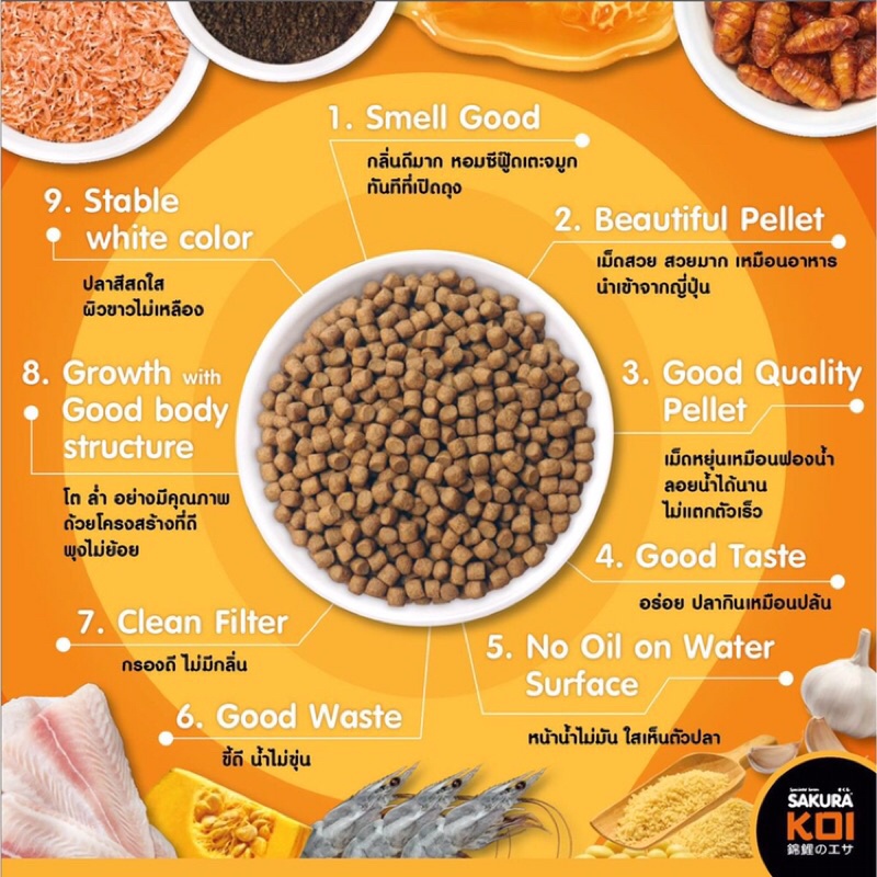 💥ซากุระโค่ย อาหารปลาคาร์ฟ 💥เม็ดจม💥 สูตรเร่งโต ขนาด 1.25 kg.