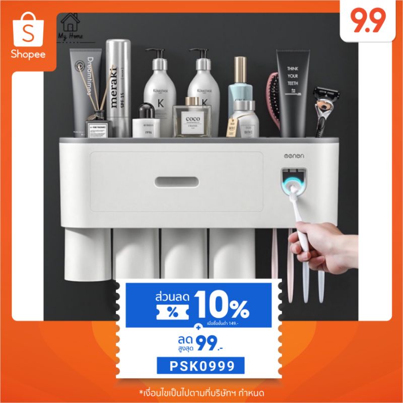 ที่วางแปรงสีฟัน ที่บีบยาสีฟัน ชั้นวางของในห้องน้ำ ที่แขวนแปรงสีฟัน พร้อมแก้ว ติดตั้งง่าย พร้อมส่ง มี7