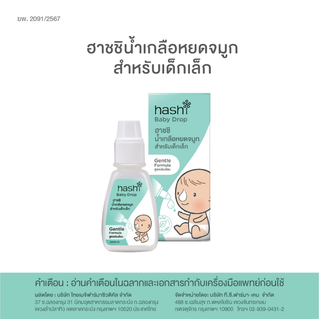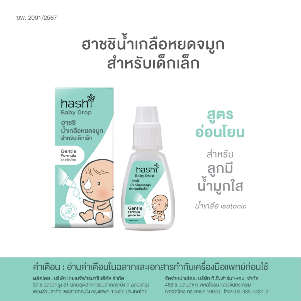 น้ำเกลือหยดจมูก สูตรอ่อนโยนของฮาชชิ Hashi Baby Drop Gentle formula 4 ml.