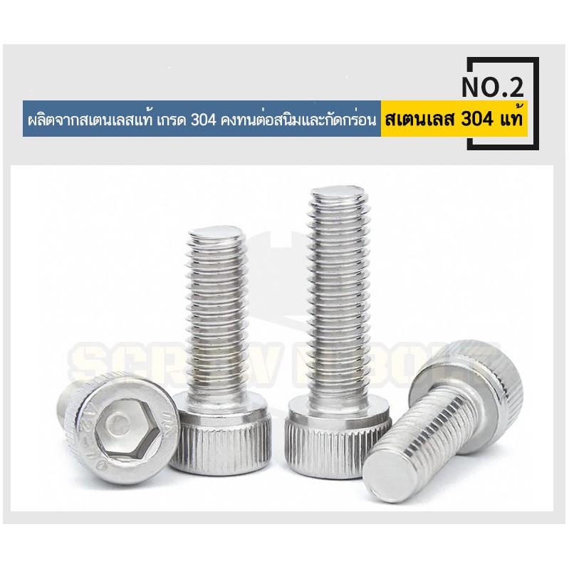น็อต สกรู หัวจม สแตนเลส 304 เกลียวมิล ตลอด หยาบ M3 / Hex Socket Head Cap Machine Screw SUS304 M3