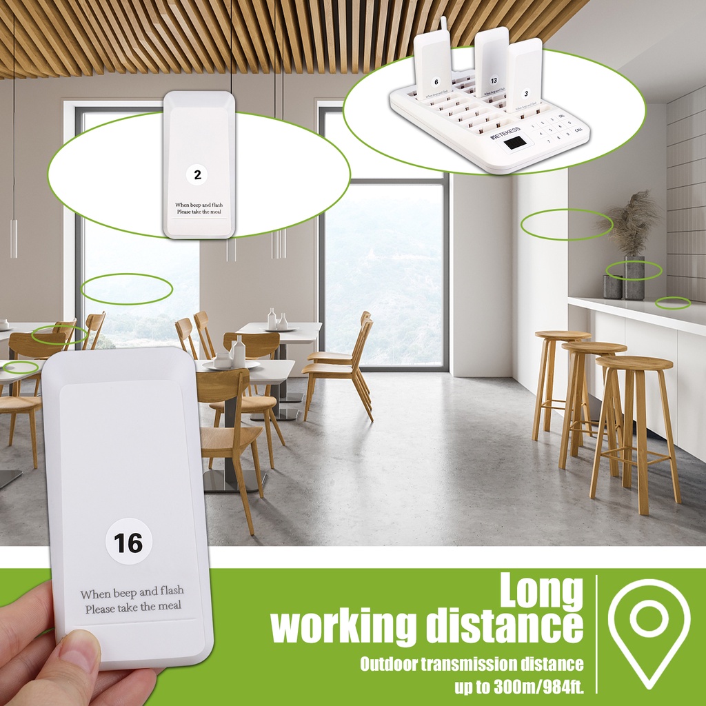 Retekess TD157 ระบบเรียกคิว เพจเจอร์เรียกคิว แบบไร้สาย ระบบเรียกคิว เครื่องเรียกคิวไร้สาย 1-99 ปุ่มกดระบบสัมผัส สำหรับร้านอาหาร 16 เครื่อง