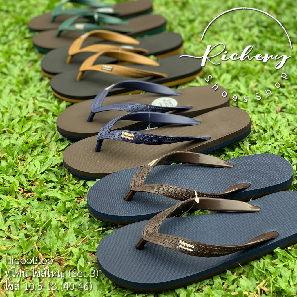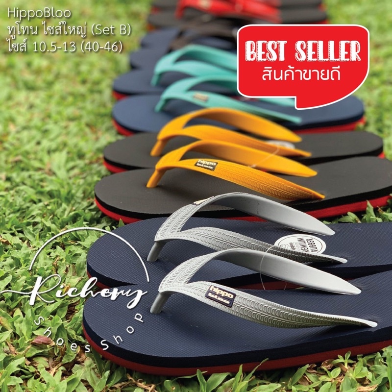 รองเท้าแตะไซส์ใหญ่ Hippo Bloo สีดำตัดเทา ทูโทน เลือกสีได้ตามชอบ น้ำหนักเบา