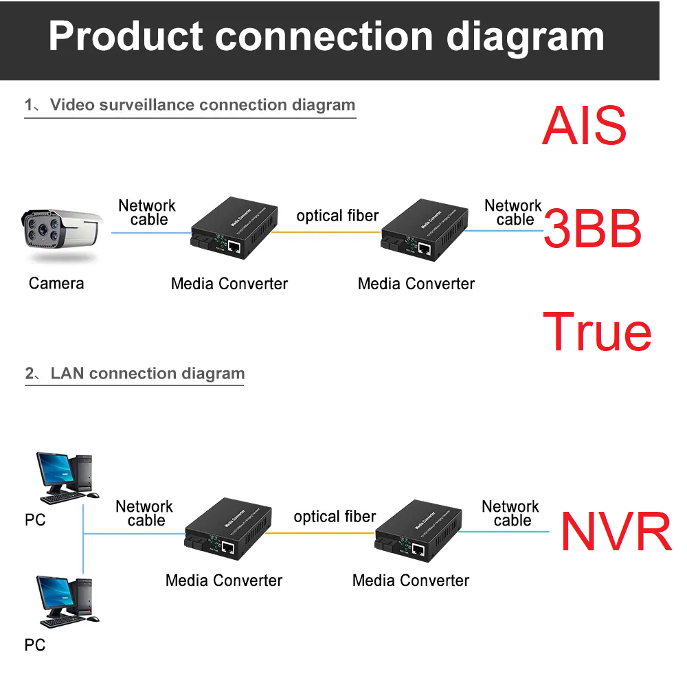 Gigabit Media Converter 100/1000 Mbps แถมสาย 100/200/300/400/500 (สายมีลวดสลิงแบบ outdoor)