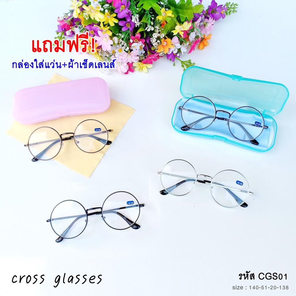 แว่นสายตาสั้น-0.5ถึง-4.00 ทรงกลม รหัส CGS01 แถมกล่องแว่น+ผ้าเช็ดเลนส์