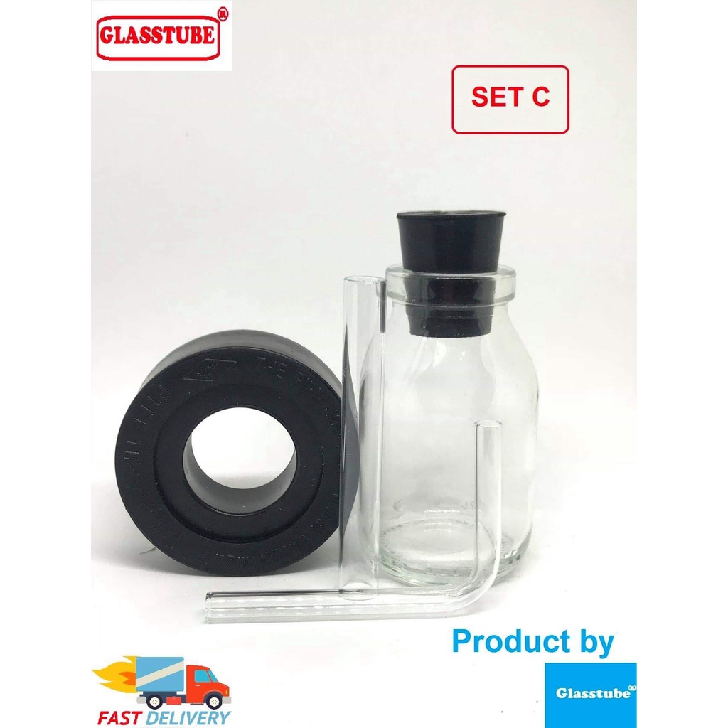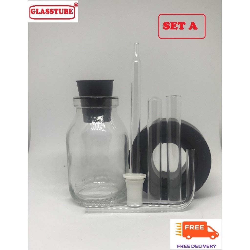 หลอดทดลอง หลอดแก้วครบชุด ตุ้ม (แถมขวดแก้วใหญ่+จุกสีปิดขวด) (Glasstube Official Store)