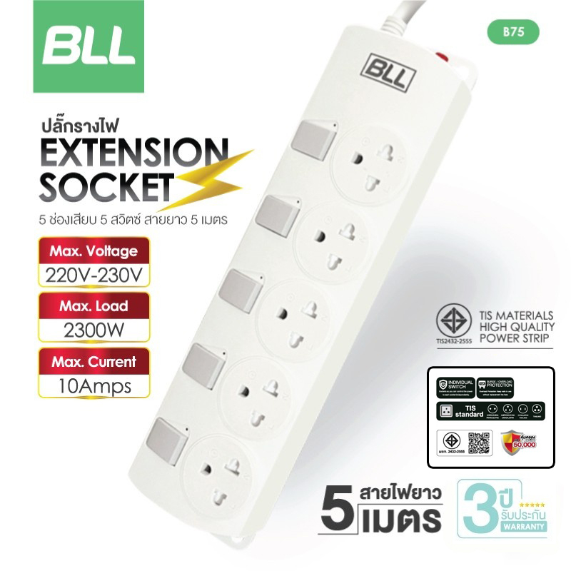 ปลั๊กไฟ มอก. VOX CHIC 3 / 4 / 5 ช่อง สวิตซ์แยก สวิตซ์เดี่ยว 2300W / 3500W 16A (3 เมตร / 5 เมตร / 10เมตร) ป้องกันไฟกระชาก