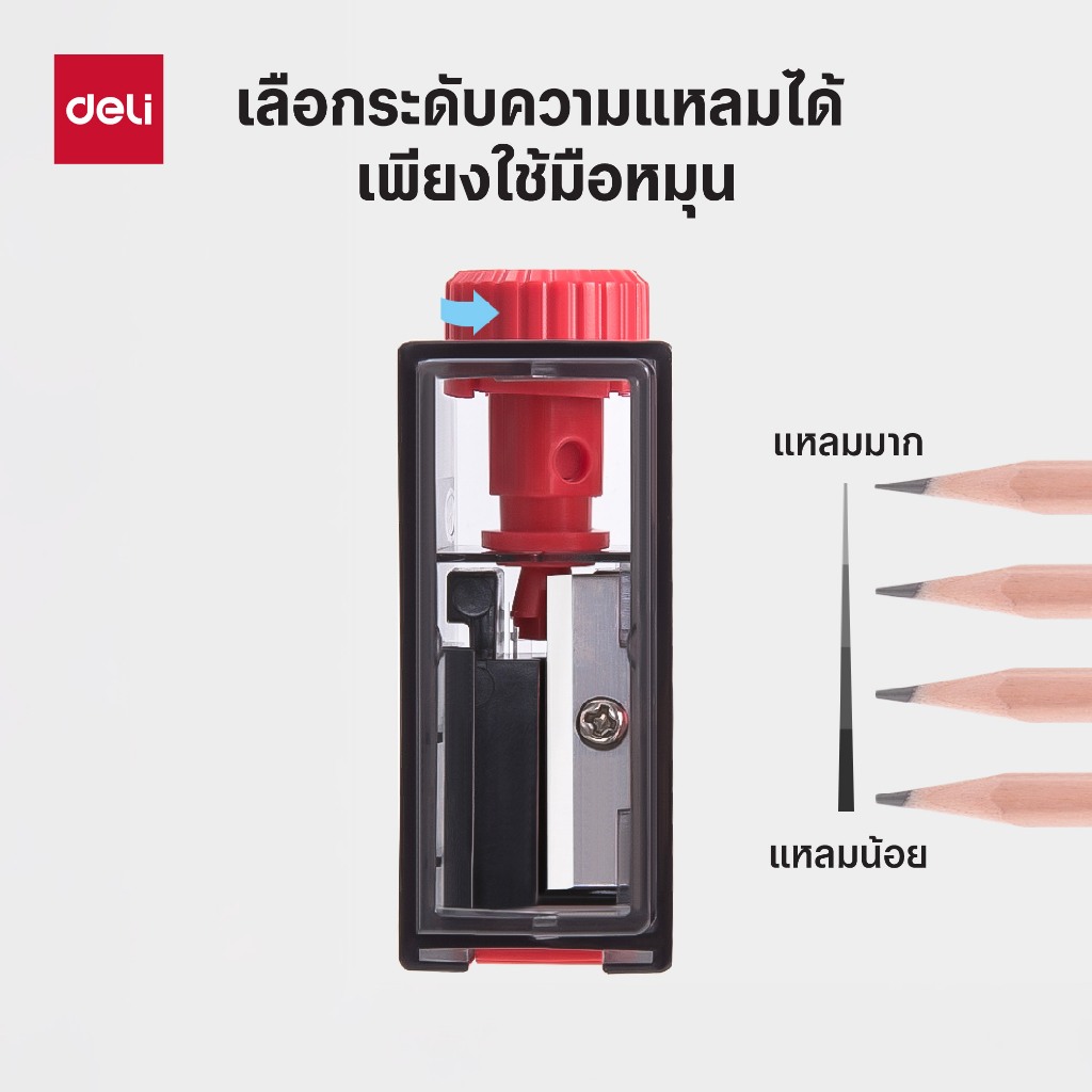 กบเหลาดินสอ Deli แบบพกพา ปรับความแหลมได้ 4 ระดับ เหมาะกับดินสอและสีไม้ (คละสี 1 ชิ้น) Sharpener