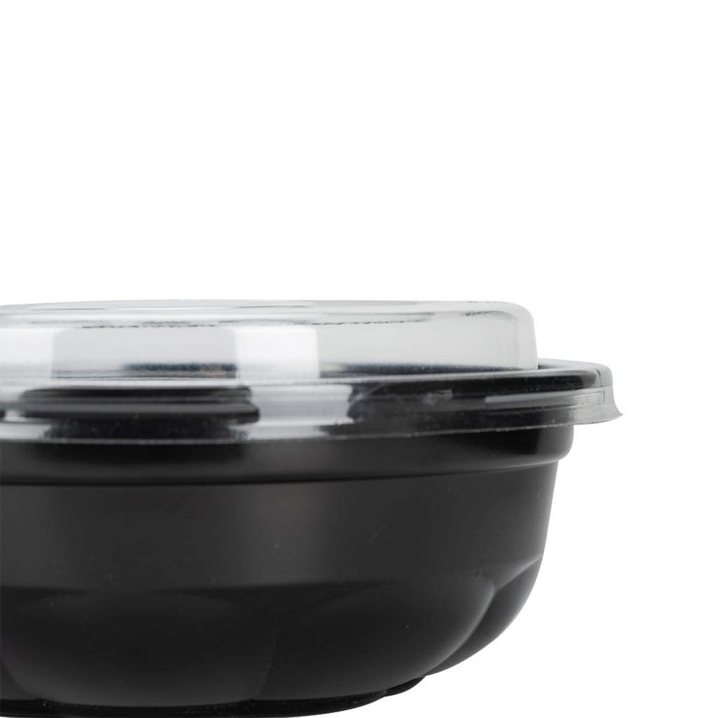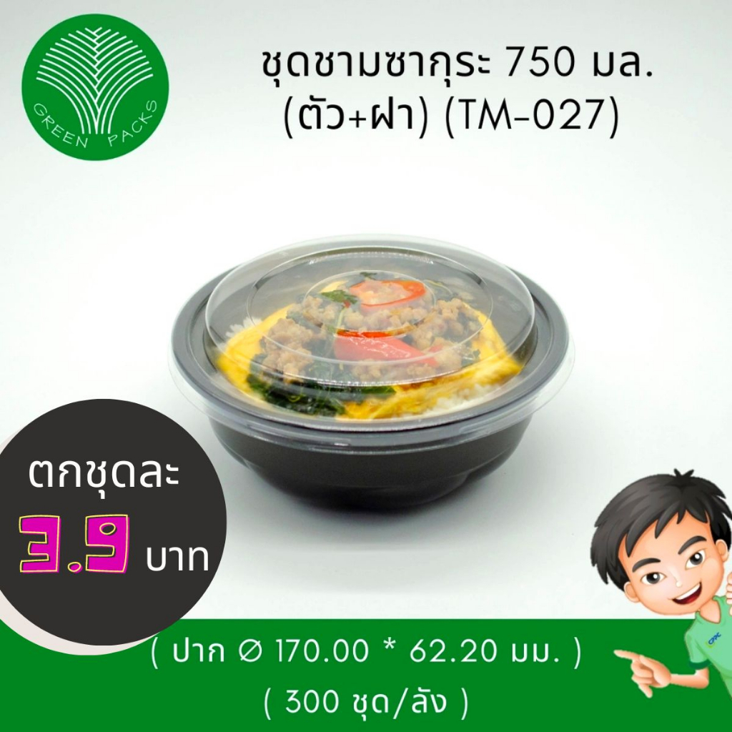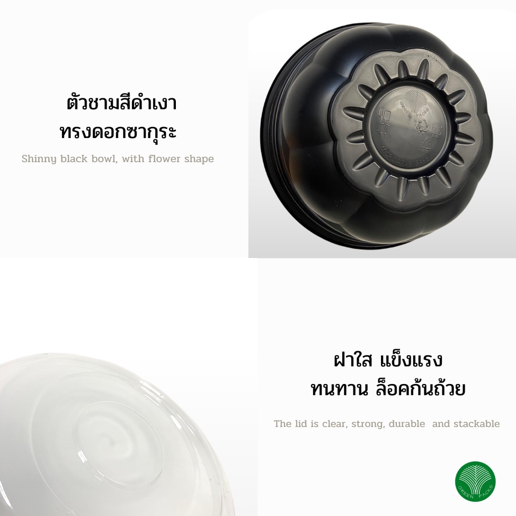 [ยกลัง] ชุดชามพลาสติก เข้าไมโครเวฟ 300 ชุด สีดำ 750ml พร้อมฝาใสชามซากุระ ราคาโรงงาน Greenpacks
