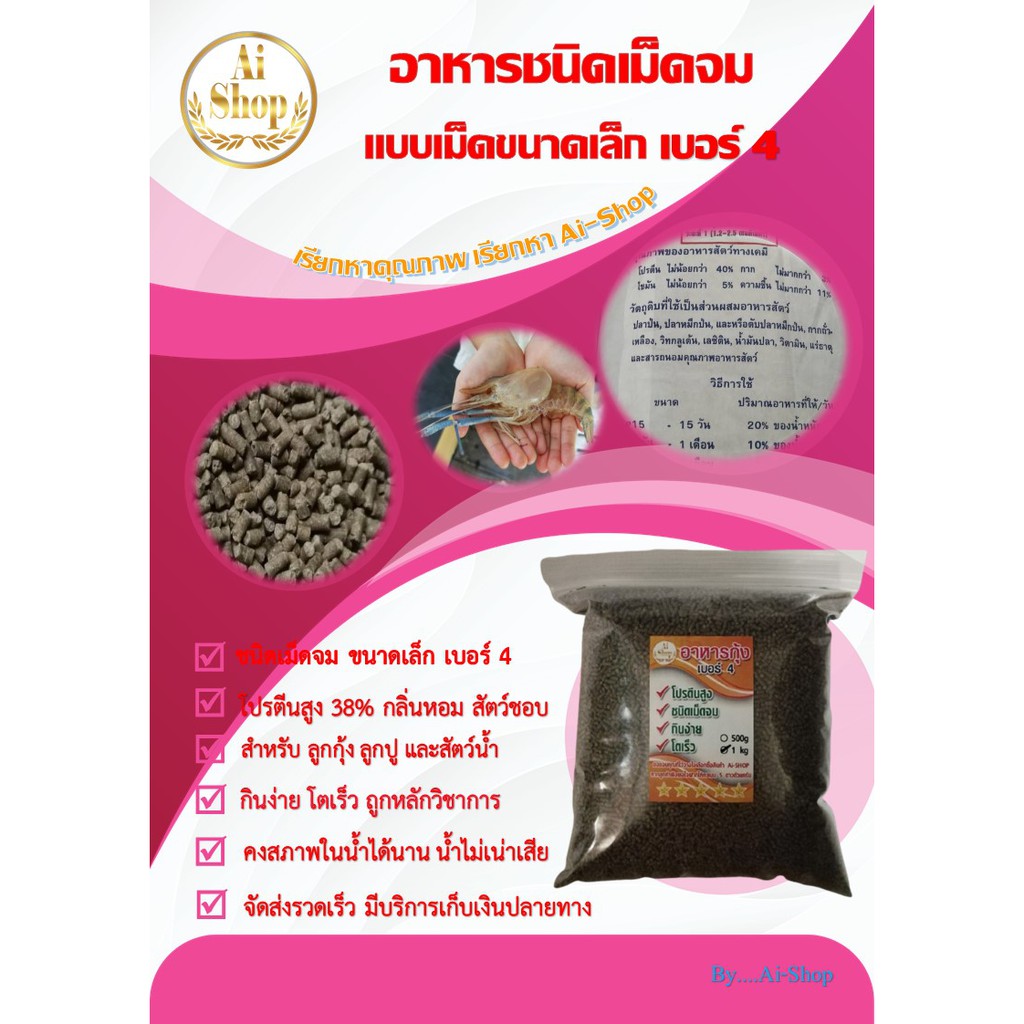 อาหารกุ้ง(คาร์กิลล์) อาหารชนิดเม็ดจม โปรตีนสูง สำหรับ กุ้งทุกชนิด สำหรับสัตว์น้ำ