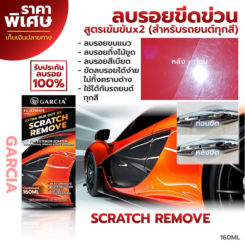 (พร้อมส่ง) น้ำยาขัดลบรอยขีดข่วนรถยนต์ สูตรเข้มข้นพิเศษ Garcia 160ml ลบรอยตื้น รอยลึก ได้ผล100%