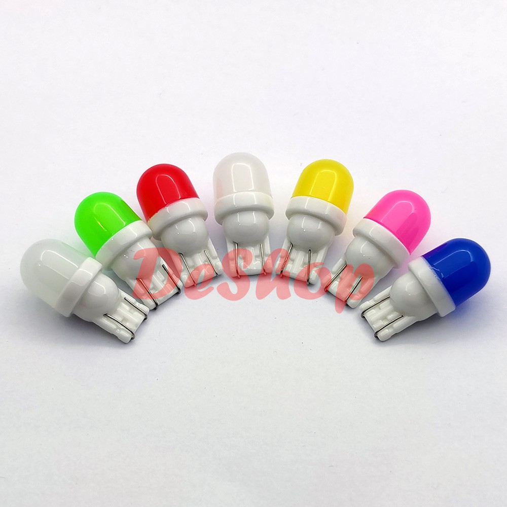 ไฟหรี่ LED T10 ขั้วเซรามิค ทนความร้อนสูง กระจายแสงดีรอบทิศทาง 2 หลอด มี 7 สี