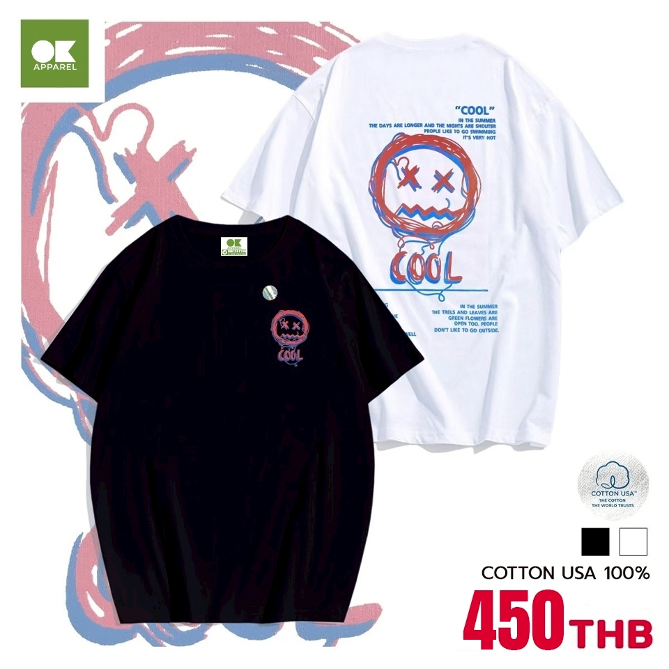 OK Apparel ⚡พร้อมส่ง⚡เสื้อยืดคอกลมสกรีนลาย XO - Oversize ผ้านำเข้าUSA