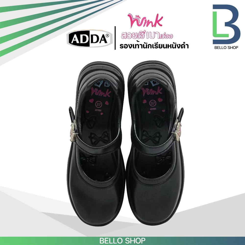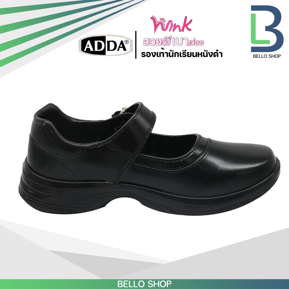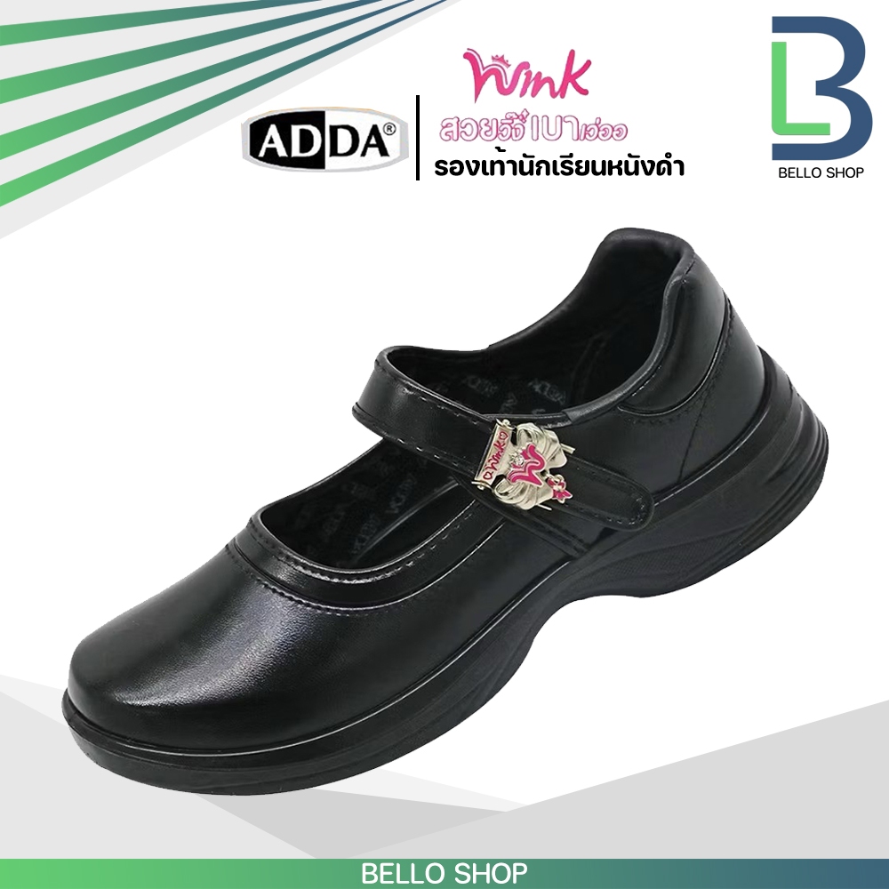 รองเท้านักเรียนหญิง Adda แอ๊ดด้า หนังดำ ลาย Wink รุ่นใหม่ 2025