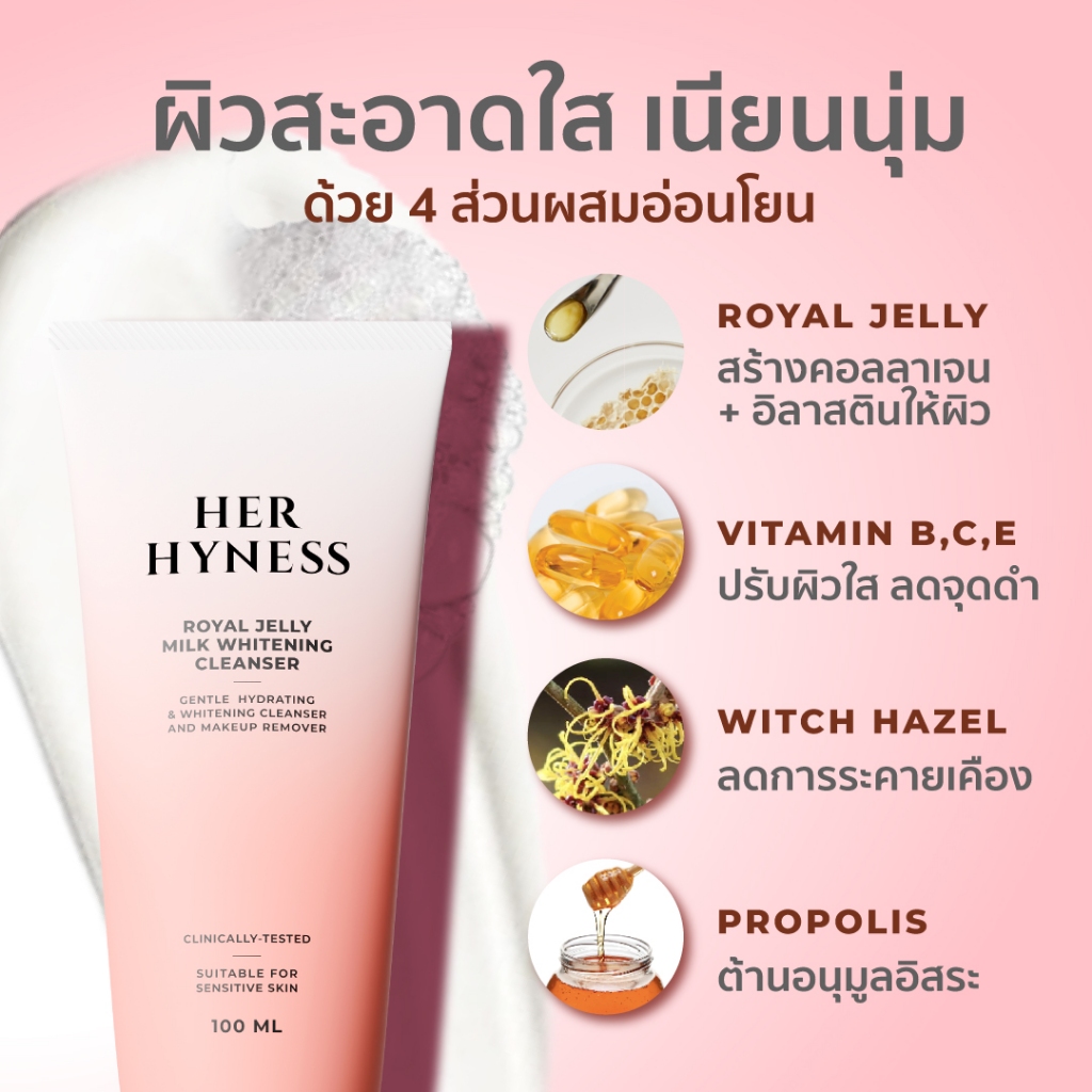HER HYNESS ROYAL JELLY MILK WHITENING CLEANSER 100ML คลีนเซอร์ ทำความสะอาดผิวหน้า 100มล.
