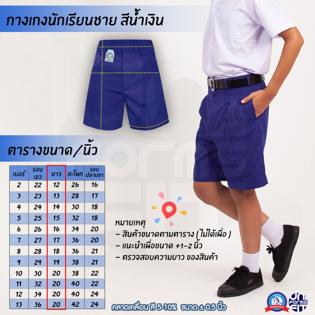 กางเกงนักเรียนชาย สีน้ำเงิน ประถม มัธยม กางเกงนักเรียน ผ้าโทเร ตราชนินทร์อาภรณ์ เบอร์ 2-13 เอว 22-36 นิ้ว