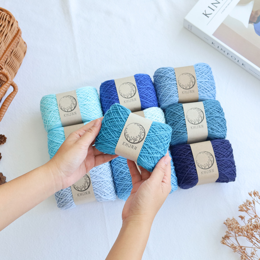 ไหมพรม ฝ้าย ไหมคอตตอนซอฟต์ โทน ฟ้า ใกล้เคียง 4ply หนัก 50/100 กรัม