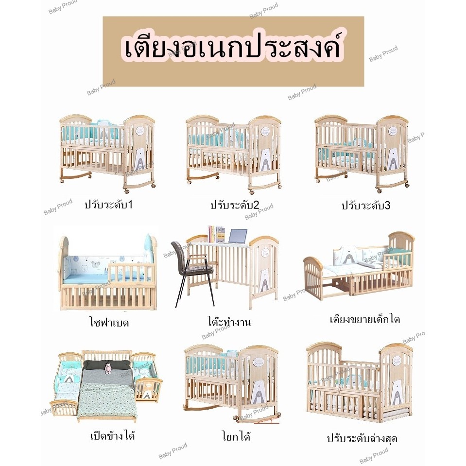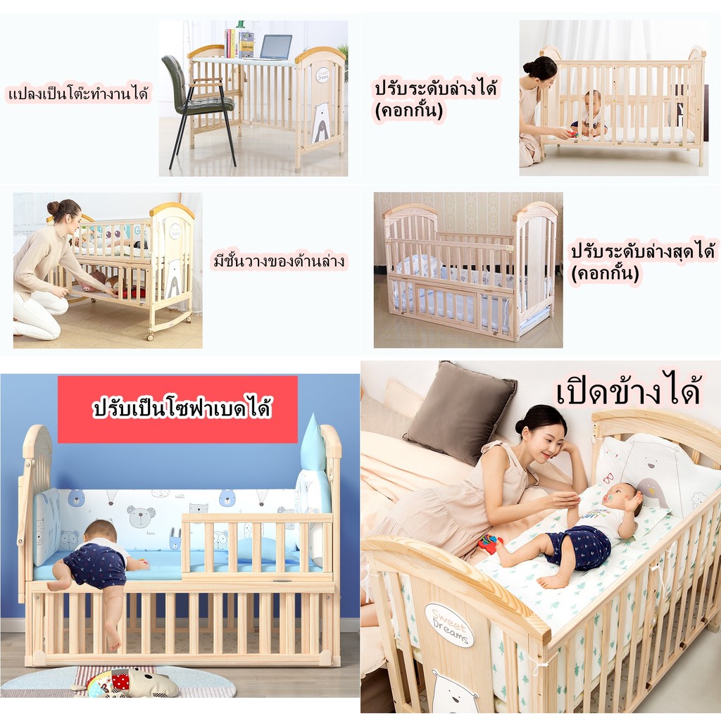 💥(ลดเพิ่ม 938.-ทักแชท) เตียงไม้เด็ก รุ่น 3.2 แปลงร่างขยายความยาวได้ ปรับระดับได้ สีไม้ พร้อมโต๊ะ