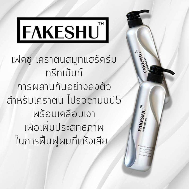 (2ขวด) Fakeshu Keratin เฟคชู เคราตินเข้มข้น เคลือบแก้ว ครีมหมักผม ครีมนวด เฟคซู ลดผมชี้ฟู 618 มล.x2