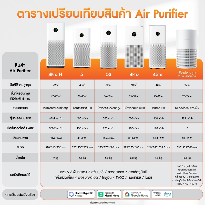 [NEW] Xiaomi Smart Air Purifier 4 Lite/4 Pro /5S เครื่องฟอกอากาศ กำจัดฟอร์มาลดีไฮด์/PM2.5 เหมาะพื้นที่ 25-43㎡