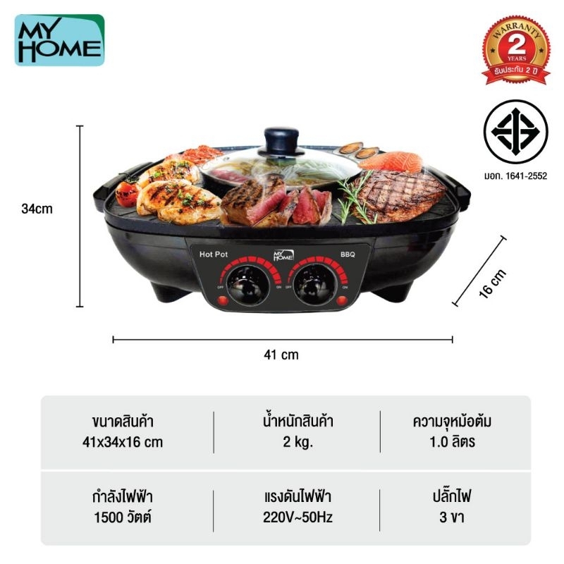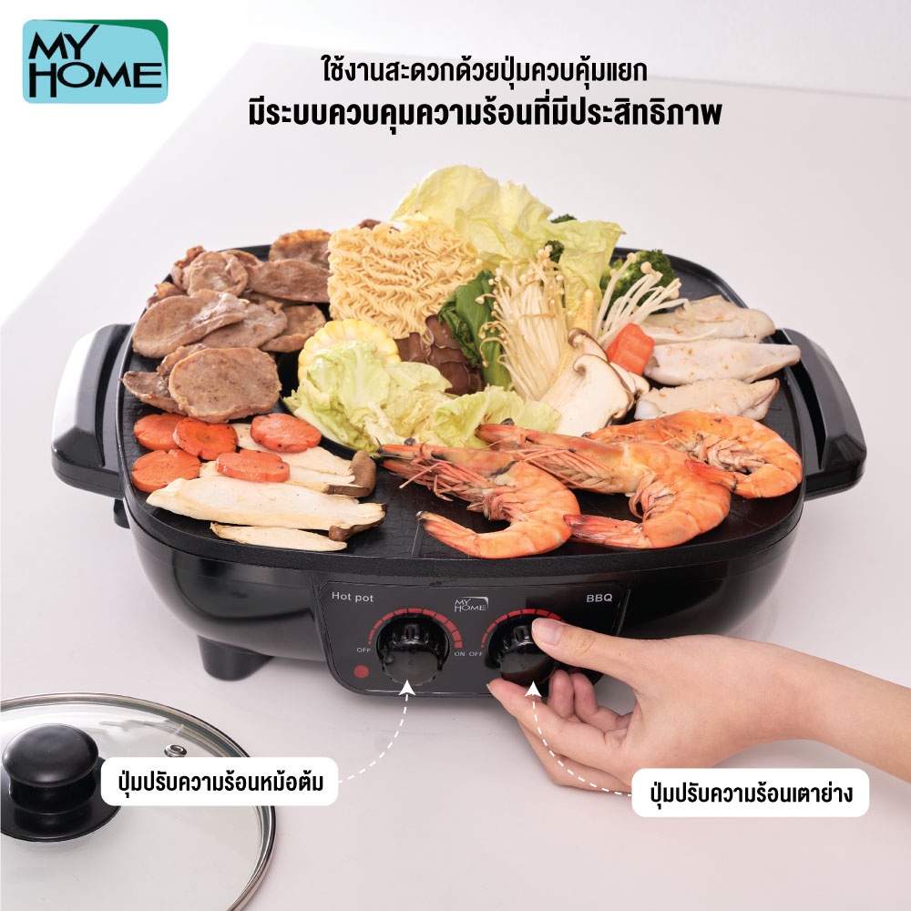 MYHOME เตาปิ้งเตาย่างบาบีคิว พร้อมหม้อสุกี้ รุ่น BBQ3101 รับประกัน 2 ปี