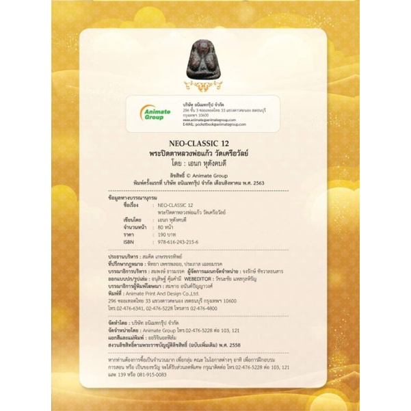 หนังสือชื่อ NEO-CLASSIC 12 พระปิดตาหลวงพ่อแก้ว