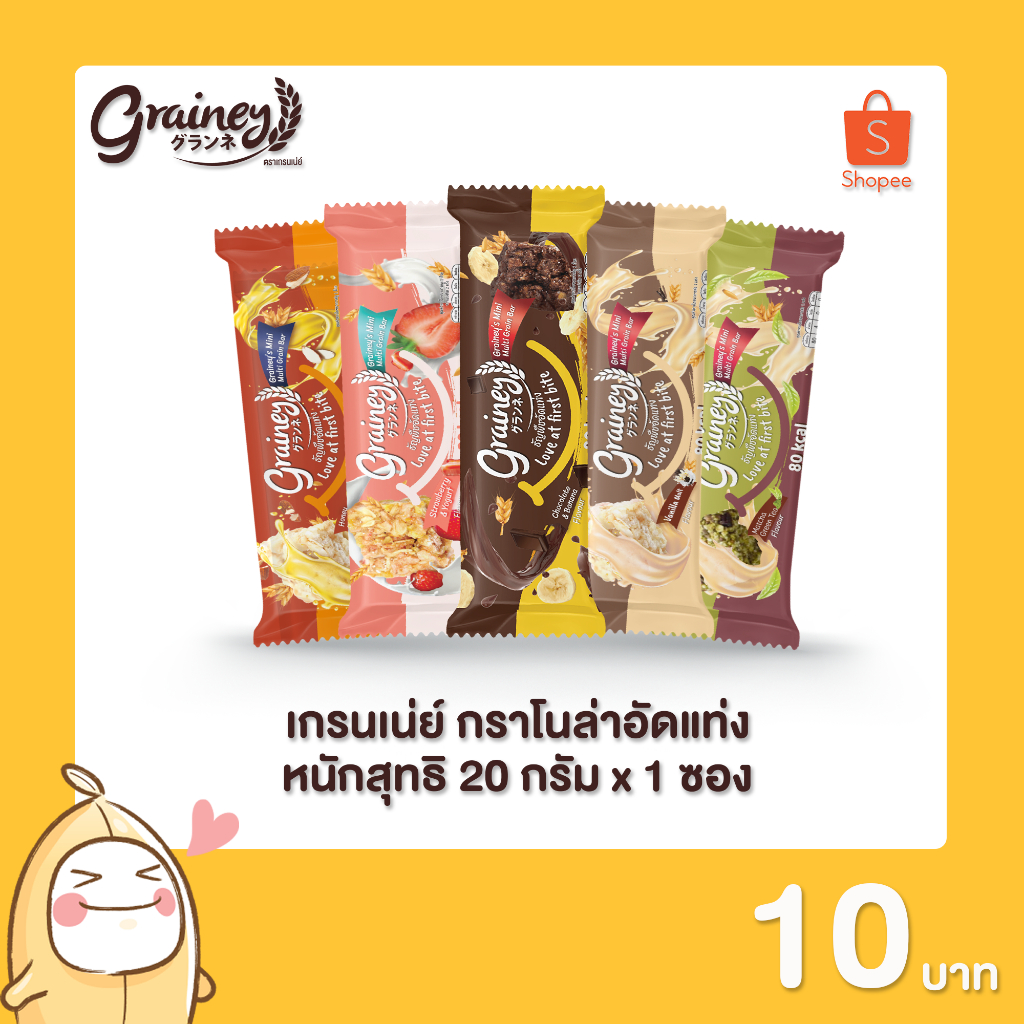 Grainey กราโนล่าอัดแท่ง หนักสุทธิ 20 กรัม จำนวน 1 ซอง