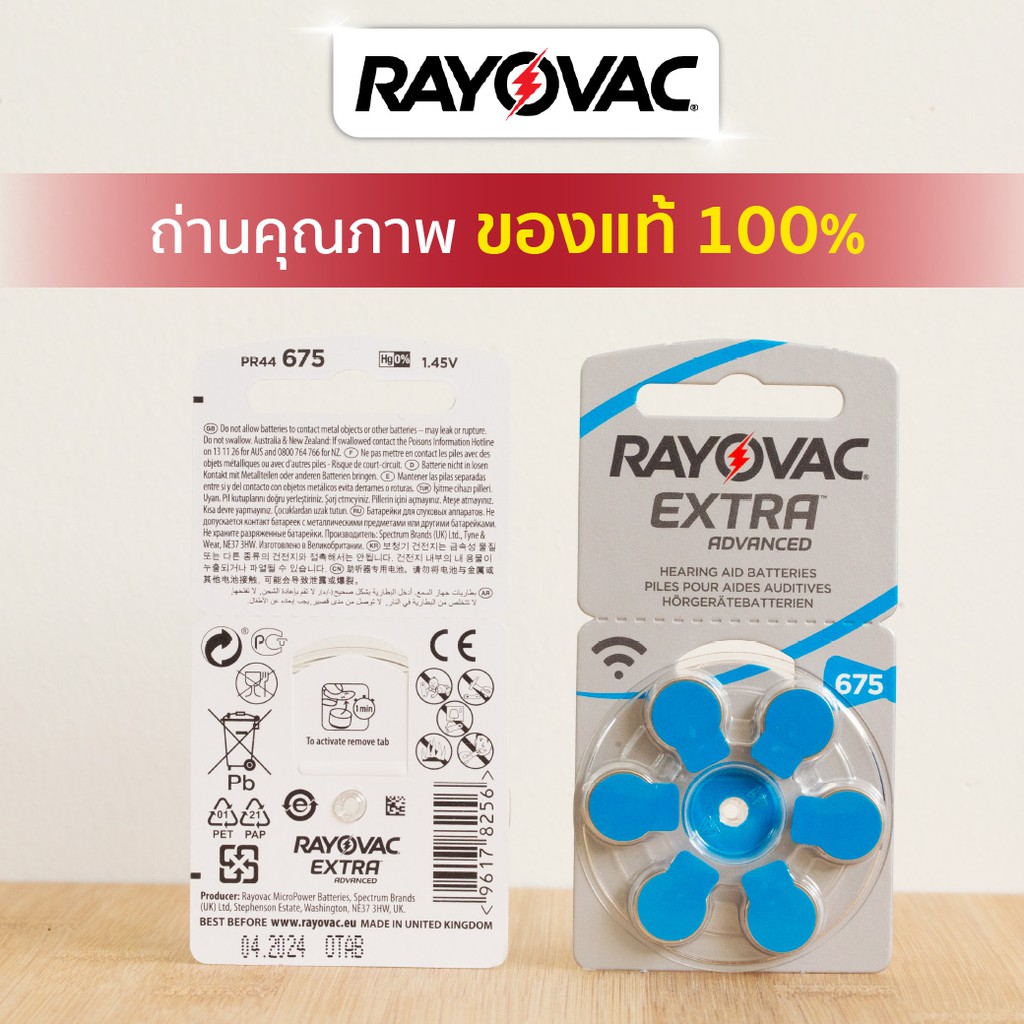 ถ่านเครื่องช่วยฟัง RAYOVAC เบอร์ 675 แพ็ค 6 ก้อน (แท้100%) ผลิตในอังกฤษ