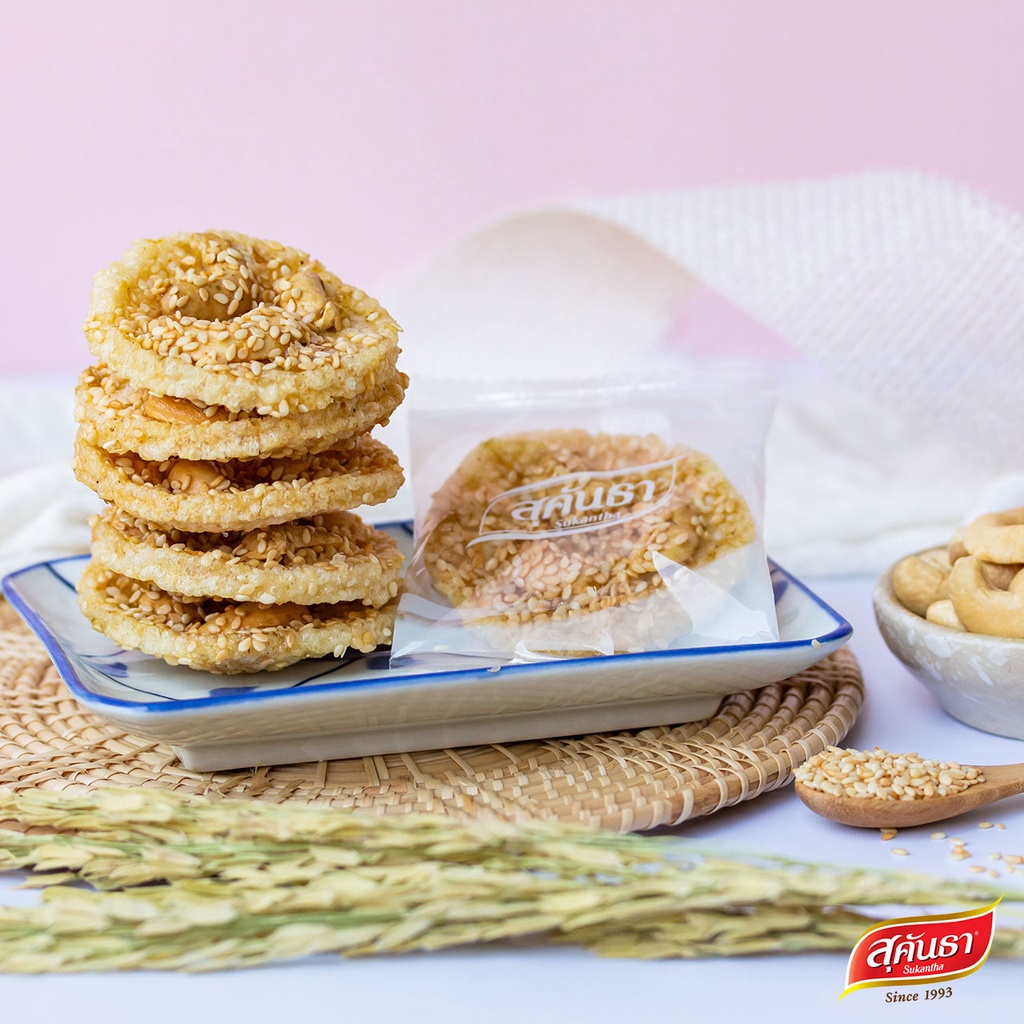 ขนมไทย สุคันธา ข้าวตังหน้าเมล็ดมะม่วงหิมพานต์ แบบกล่อง (80 กรัม) Sukantha Rice Crisps with Cashew Nut