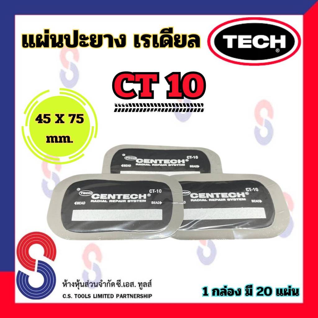 แผ่นปะยาง TECH CT10 ขนาด 45 X 75 มม. 1 กล่อง มี 20 แผ่นปะยางเรเดียล แผ่นปะซ่อมแผลยาง รถยนต์ รถบรรทุก