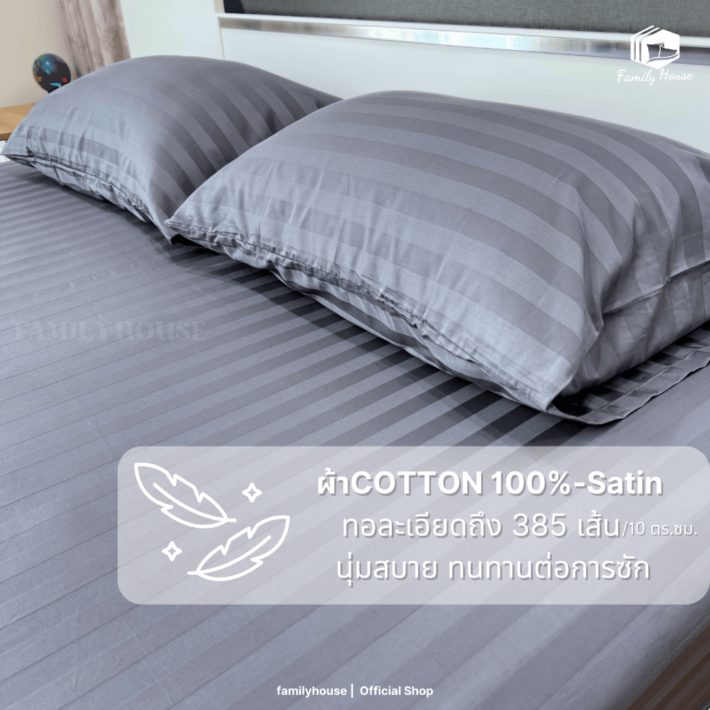 familyhouse |ผ้าปูที่นอน 100%COTTONฝ้ายธรรมชาติ ระบายกาศดีเยี่ยม เกรดโรงแรม สูง 8-11 นิ้ว_Bedsheet