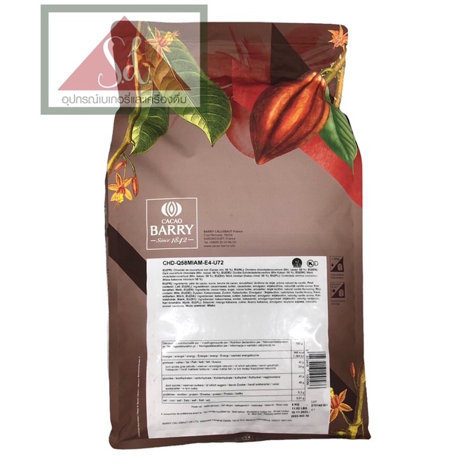 **ไม่รับคืน/เคลมทุกกรณี** Barry Dark Chocolate Couverture Mi-Amere 58% 5kg (อ่านรายละเอียดก่อนสั่ง)