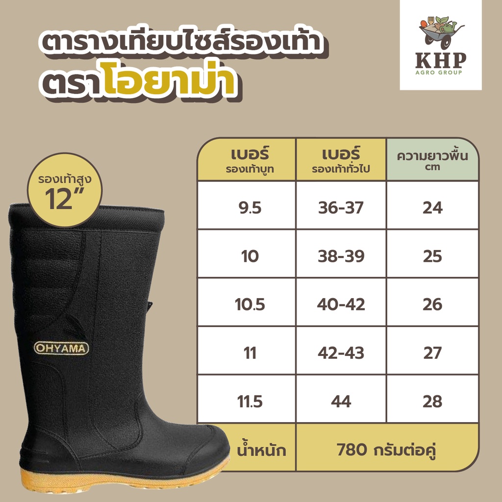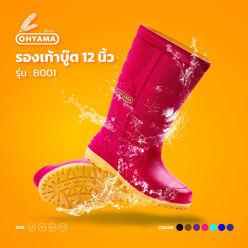 รองเท้าบู๊ท โอยาม่า โฮยาม่า สวมใส่สบาย เบา ฟู นุ่ม ยืดหยุ่นสูง รองเท้า กันฝน กันน้ำ ทำเกษตร รองเท้าบู๊ต OHYAMA 12 นิ้ว