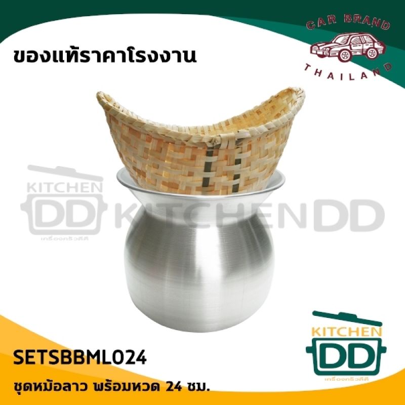 หม้อนึ่งลาว นึ่งข้าวเหนียว อลูมิเนียม รถยนต์ 22/24/26 ซม. + หวดใหญ่/ 20/22 ซม. + หวดเล็ก - 1 ชุด