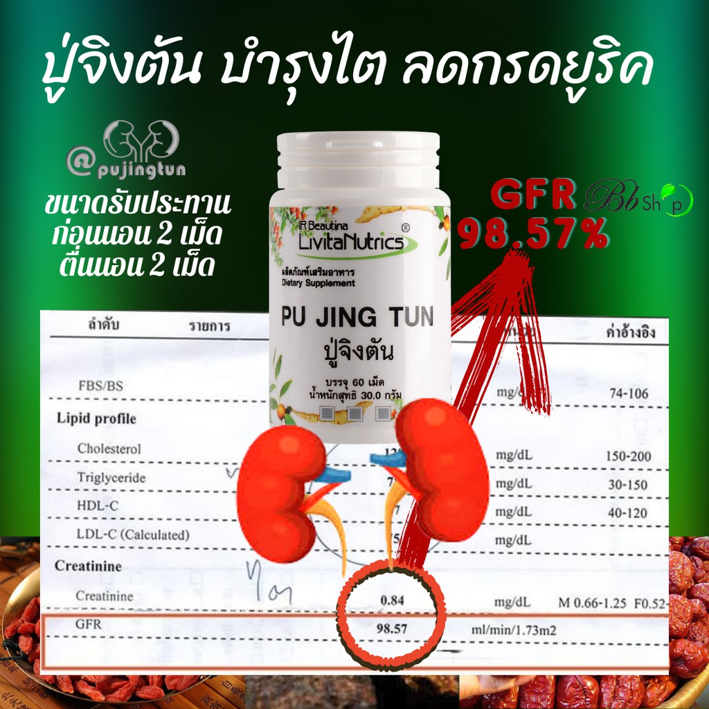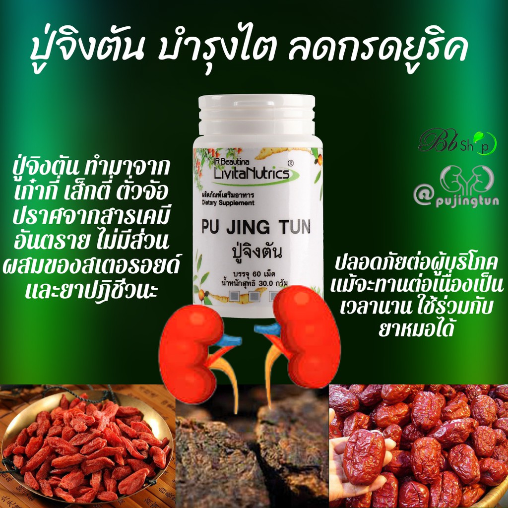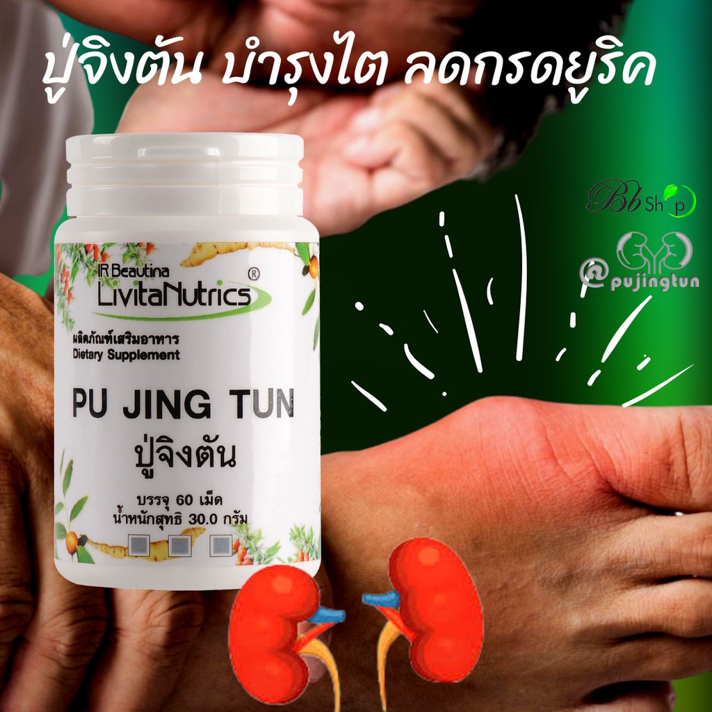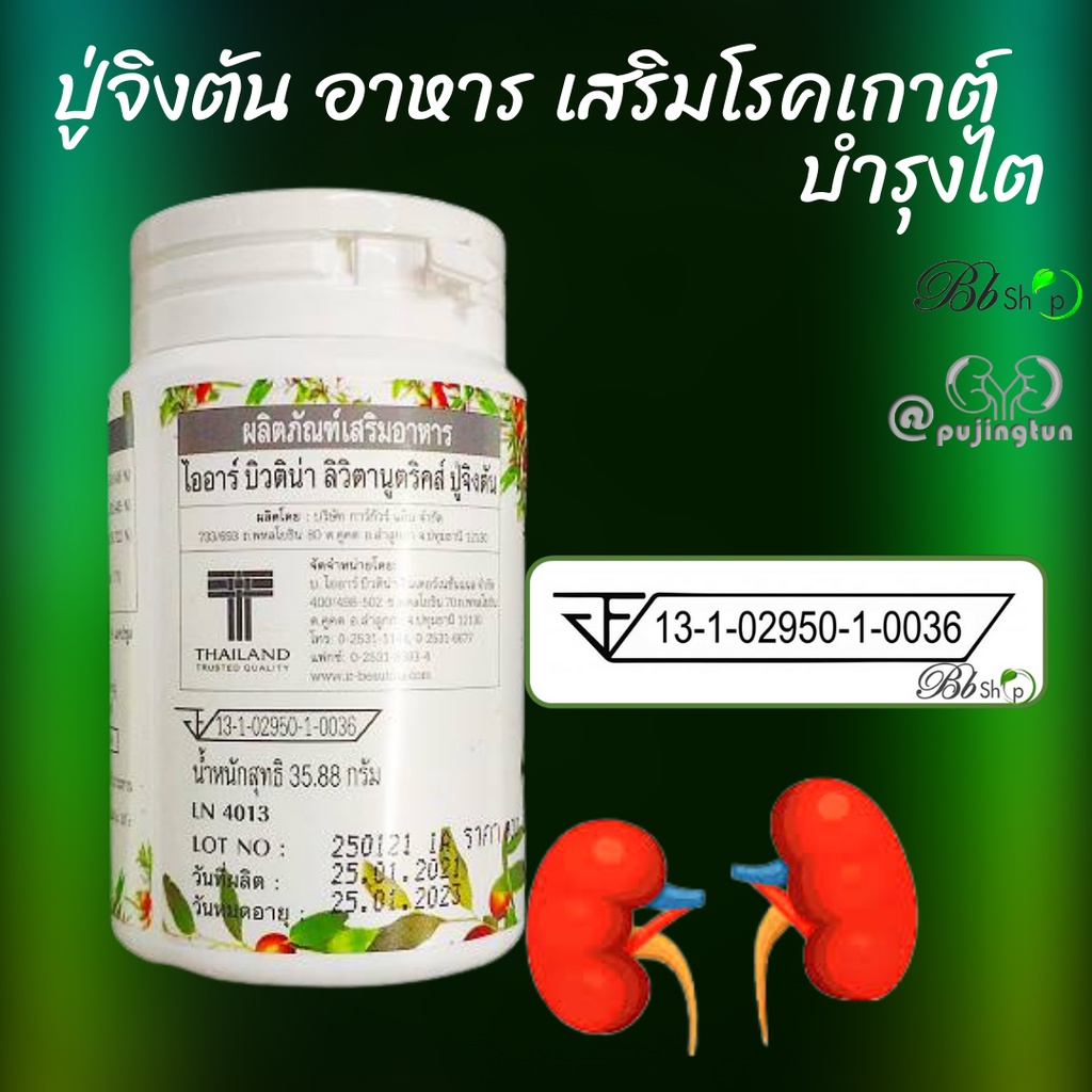 Bb ปู่จิงตัน PUJINGTUN บำรุงไต ลดกรดยูริค โรคเก๊าต์ ฟื้นฟูภาวะไตเสื่อม เก๊าต์ ไตวายฟอกไต แถมชาปัญจขันธ์ซองใหญ่ 140บาท