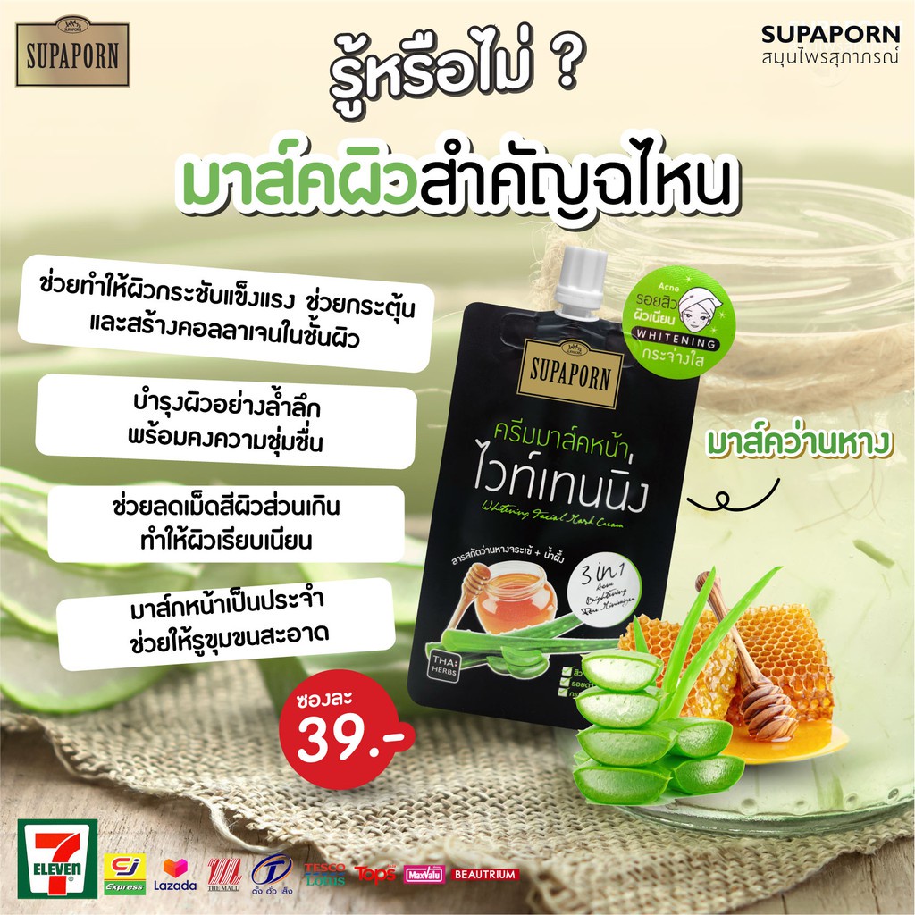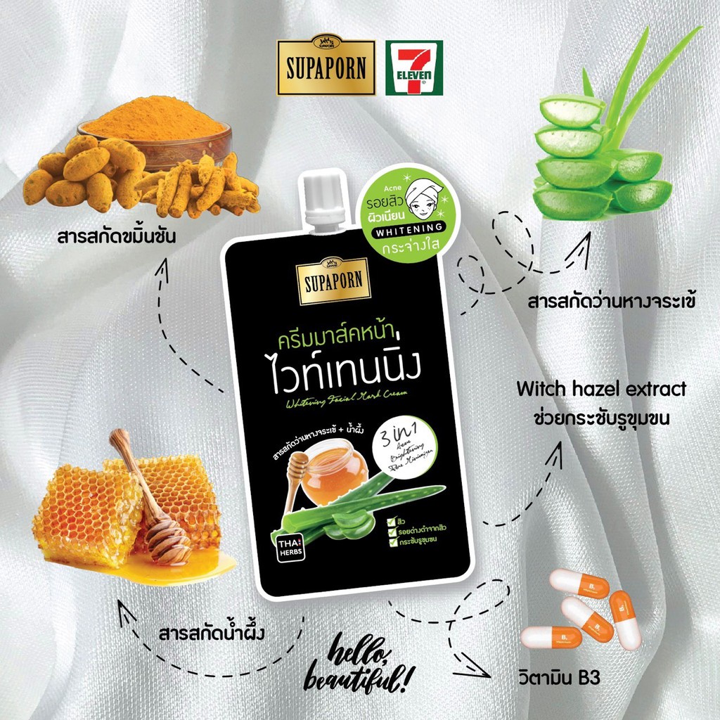 สุภาภรณ์ ครีมมาส์คหน้าไวท์เทนนิ่ง 12 กรัม Supaporn Whitening Facial Mask Cream 3 IN 1 12 g.