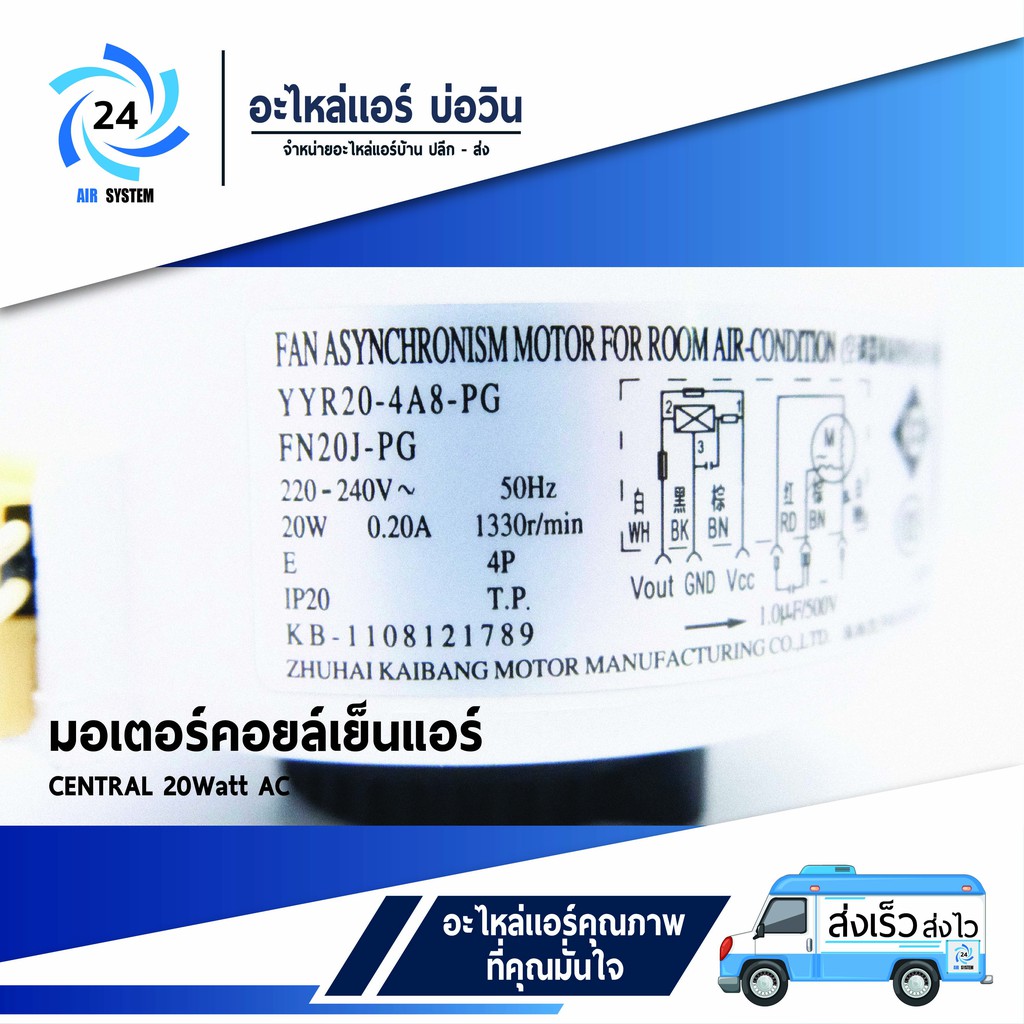 มอเตอร์แอร์ Central Air , Electrolux , Eminent Air โมเดล FN20J-PG 20W AC มอเตอร์คอยล์เย็น