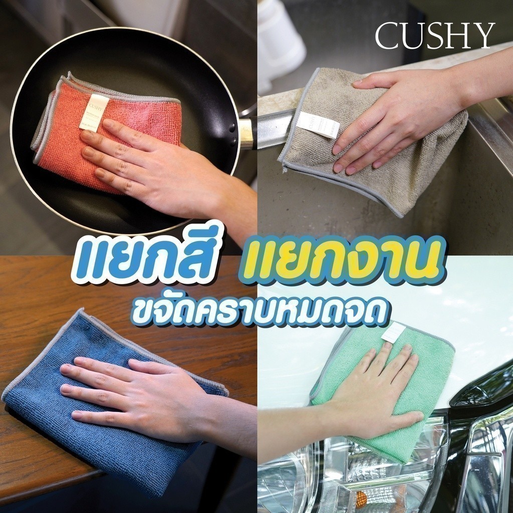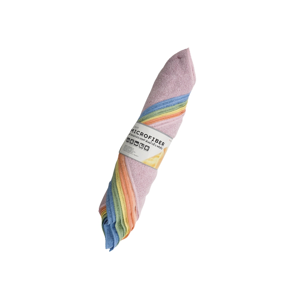 ESSENTIALS ผ้าเช็ดทำความสะอาด ผ้าเช็ดอเนกประสงค์ ผ้าไมโครไฟเบอร์ แพ็ค10 ผืน - คละสี ขนาด 30X40 CM.