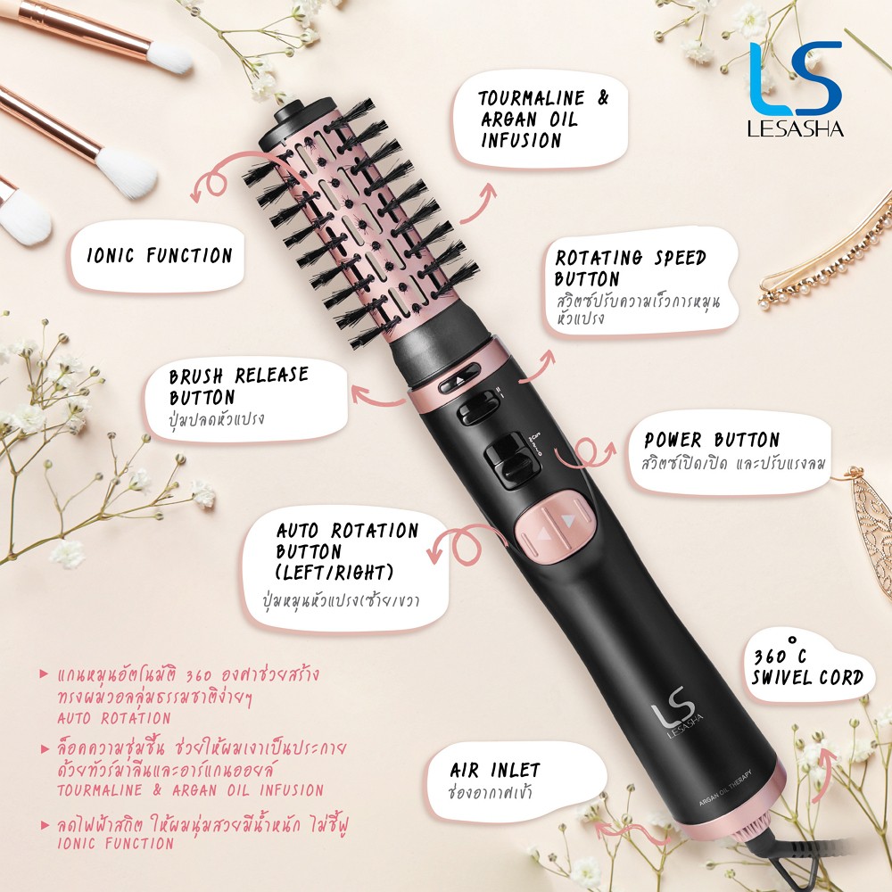LESASHA ไดร์ หมุนอัตโนมัติ รุ่น 3IN1 AUTO ROTATING HOT AIR 1000W LS1364 (3 หัว ไดร์ หวีตรง วอลลุ่ม)