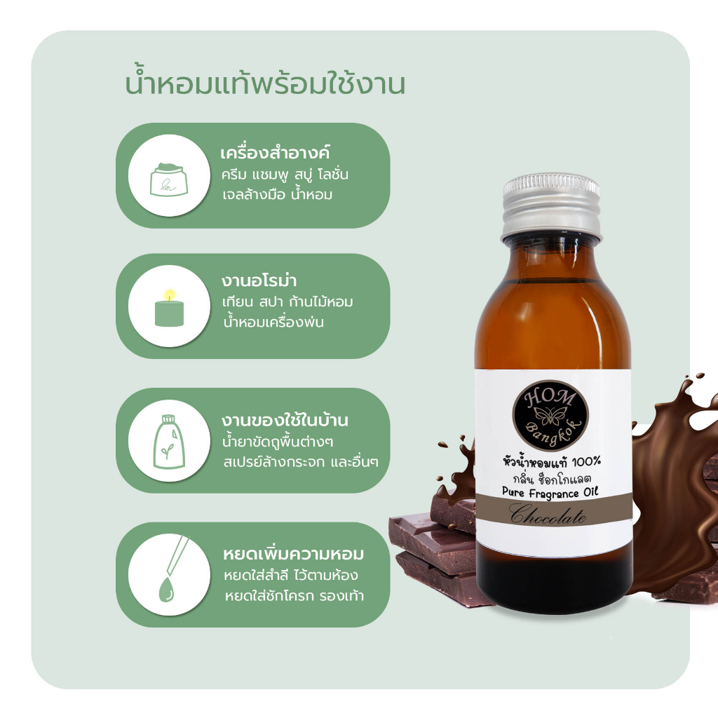 หัวน้ำหอมแท้ 100% กลิ่น ช็อคโกแลต ช็อคโกแลตมิ้นต์ เข้มข้นบริสุทธิ์ ไม่ผสมแอลกอฮอล์