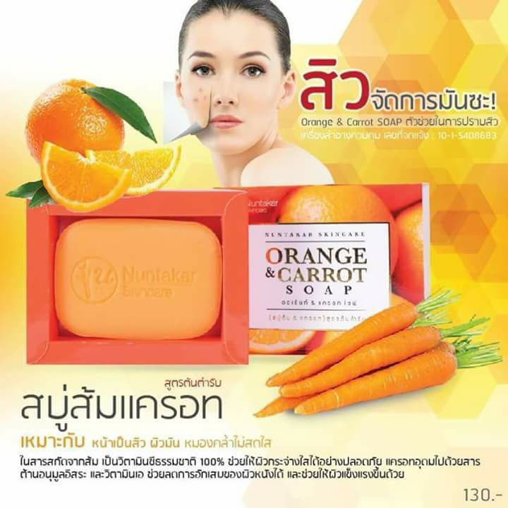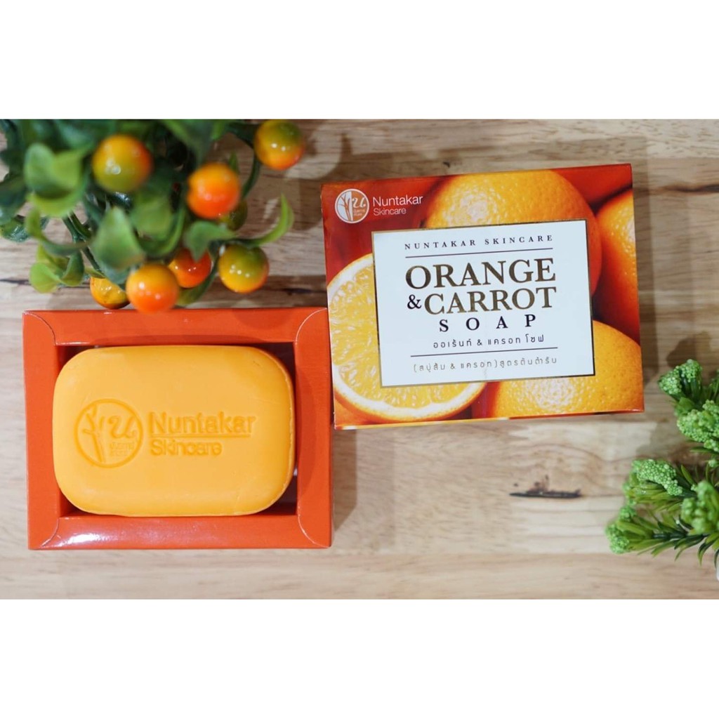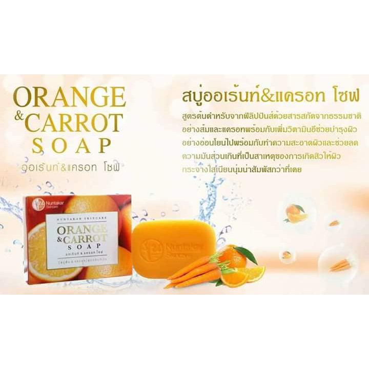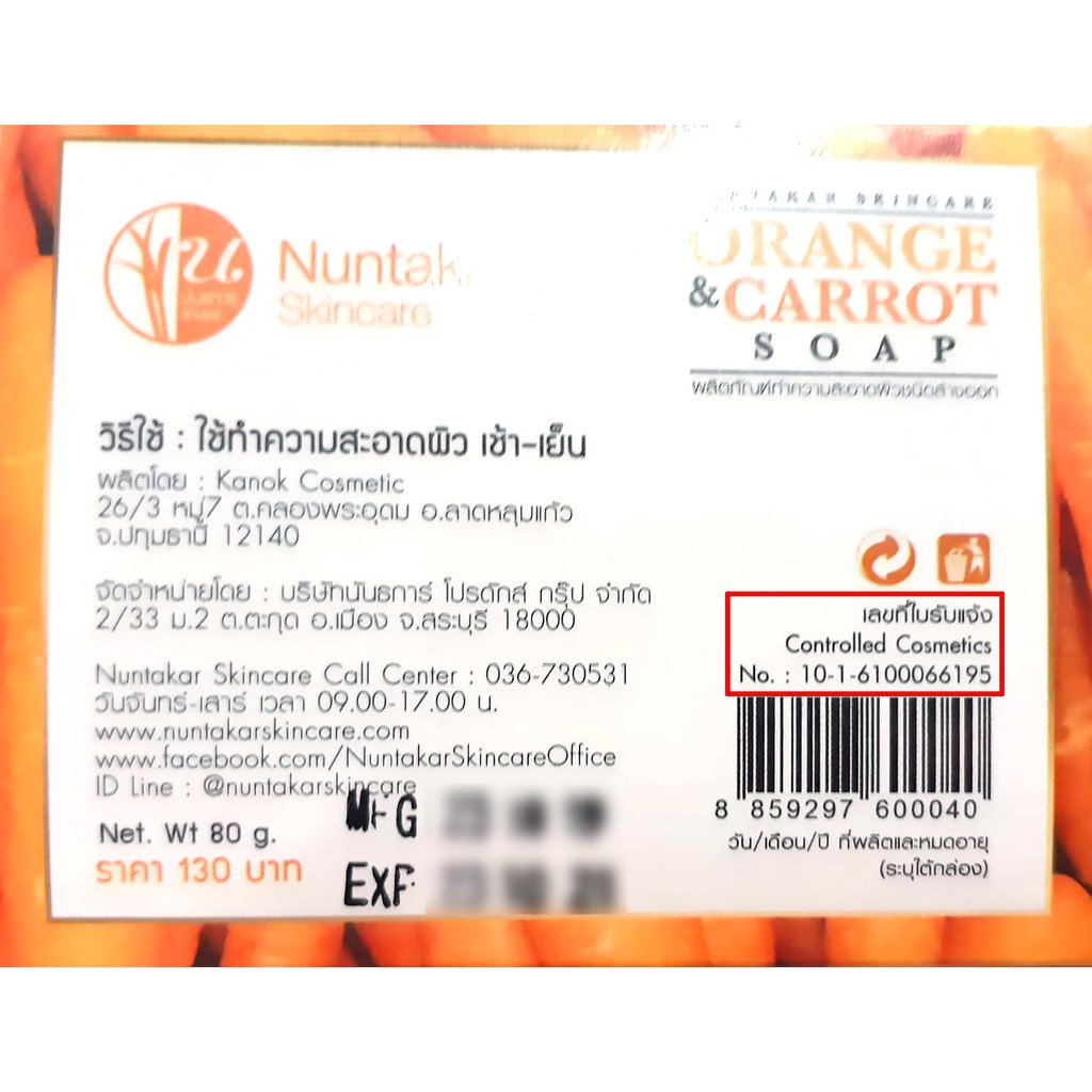 สบู่ส้มแครอท Skincare Orange&Carrot Soup ยี่ห้อ นันธการ์ 80 กรัม จำนวน 1 ก้อน มีอย. ล้างเครื่องสำอางค์หมดจด ช่วยลดความมั