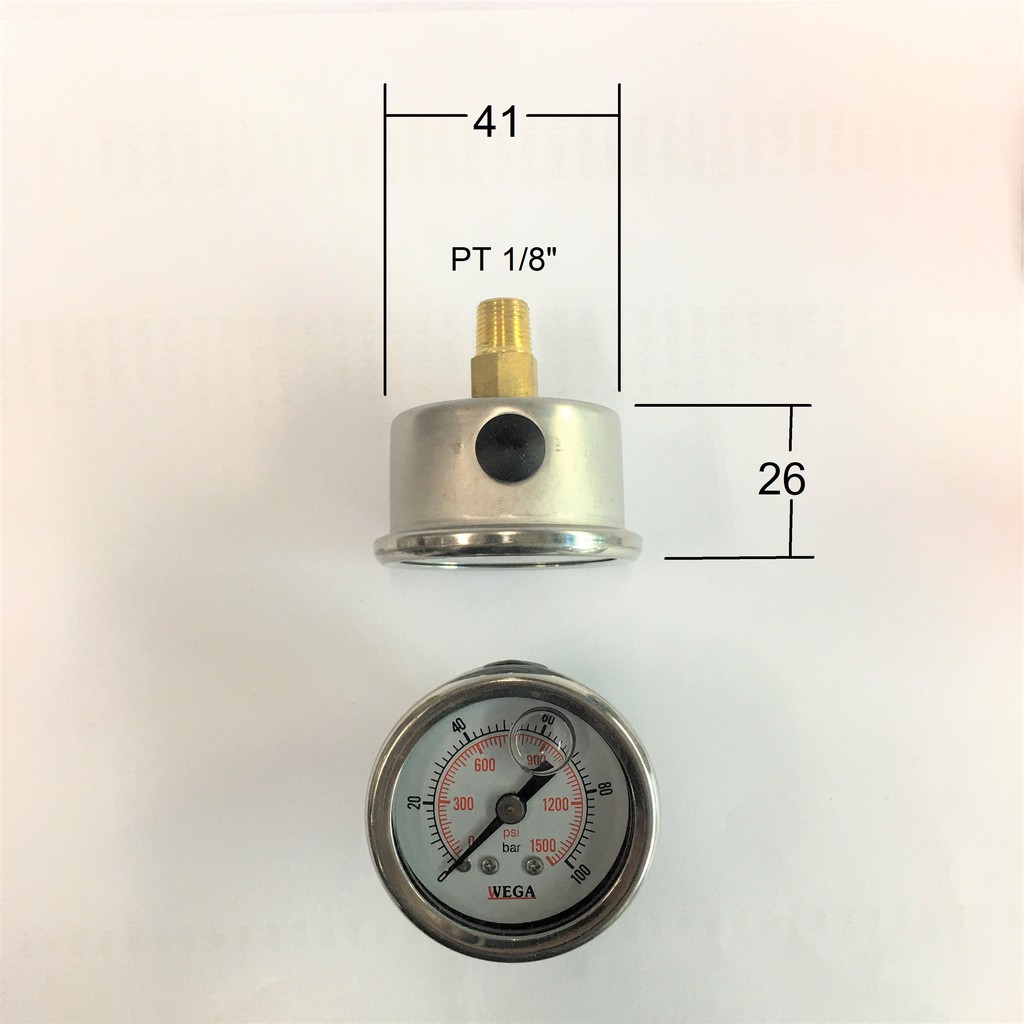 เกจวัดแรงดัน ขนาดหน้าปัด 1.5" WEGA pressure gauge แสตนเลส เติมกลีเซอรีน ขนาด 1.5 นิ้ว เกลียวทองเหลือง 1/8" ออกด้านหลัง